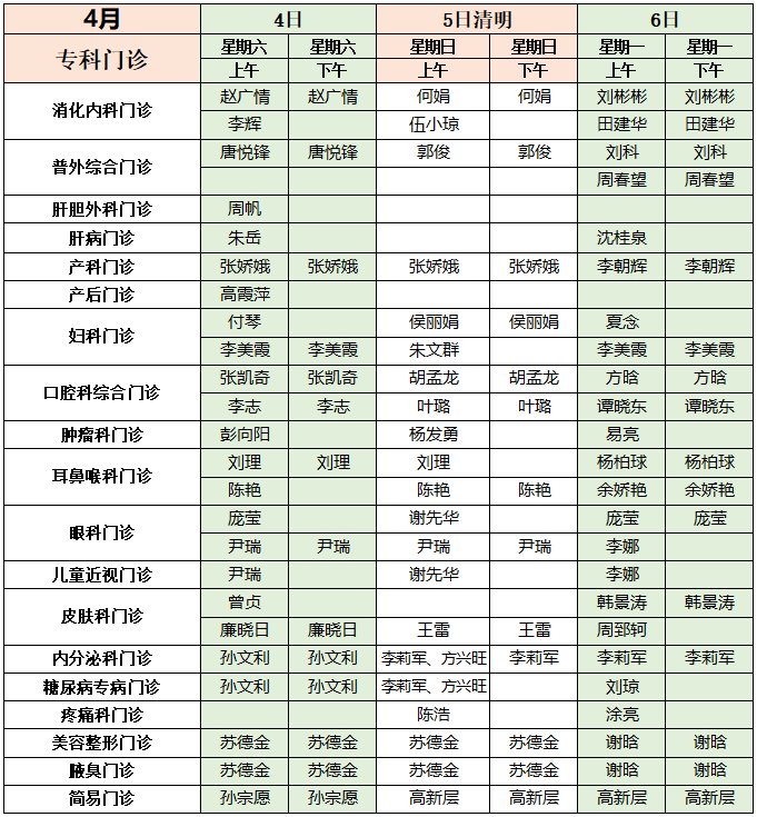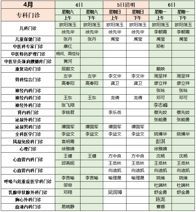 岳阳市人民医院清明节假期 (2026年4月4日至2026年4月6日)门诊工作安排如下,特此公告。