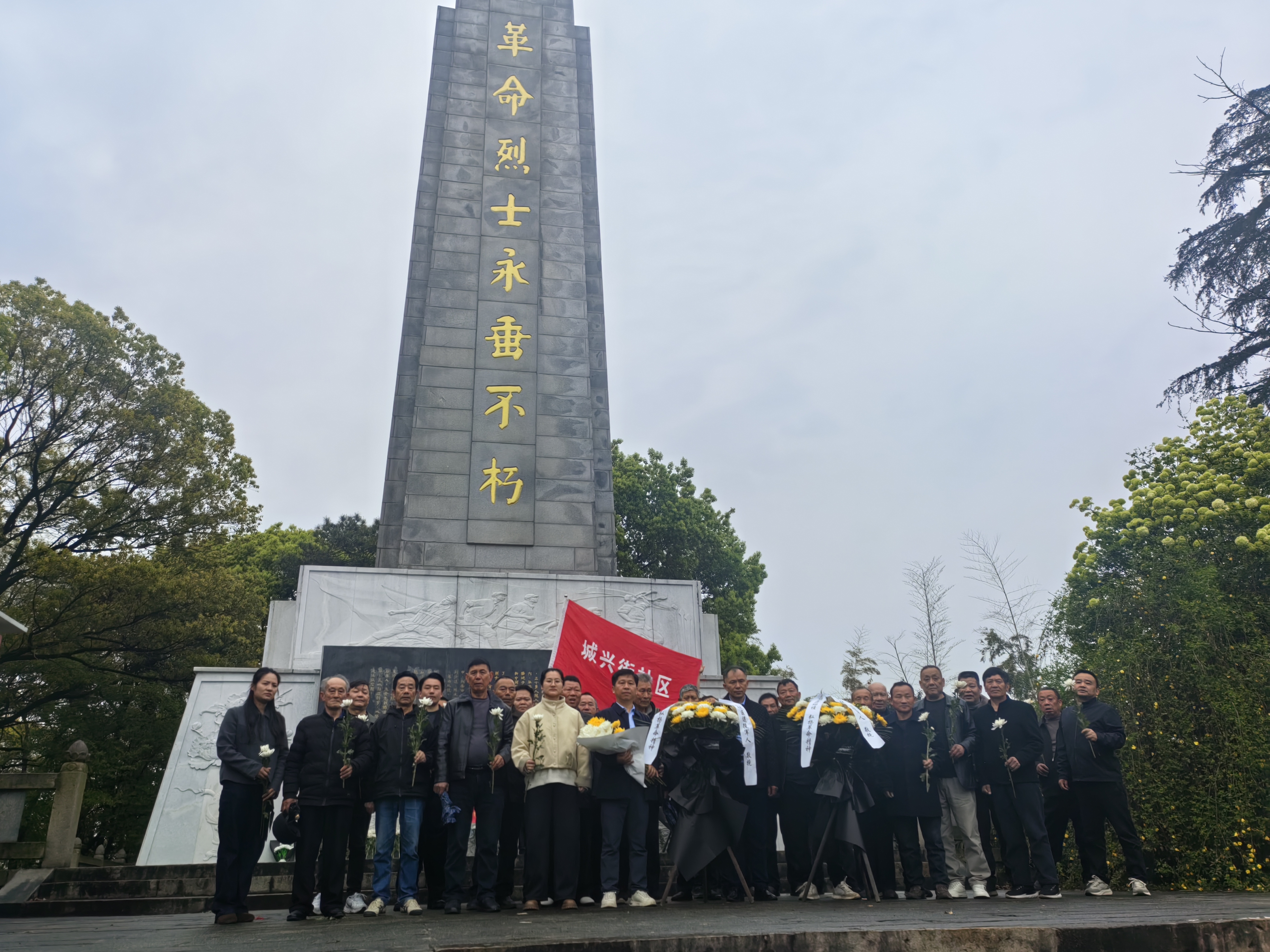 活动现场庄重肃穆,全体人员整齐列队,向革命先烈默哀致敬,社区及退役军人代表向烈士纪念碑敬献花篮。在铿锵有力的领誓下,全体退役军人重温军人誓词,以铮铮誓言铭记初心使命。随后,大家有序瞻仰烈士纪念碑、敬献鲜花,聆听革命先烈英雄事迹。