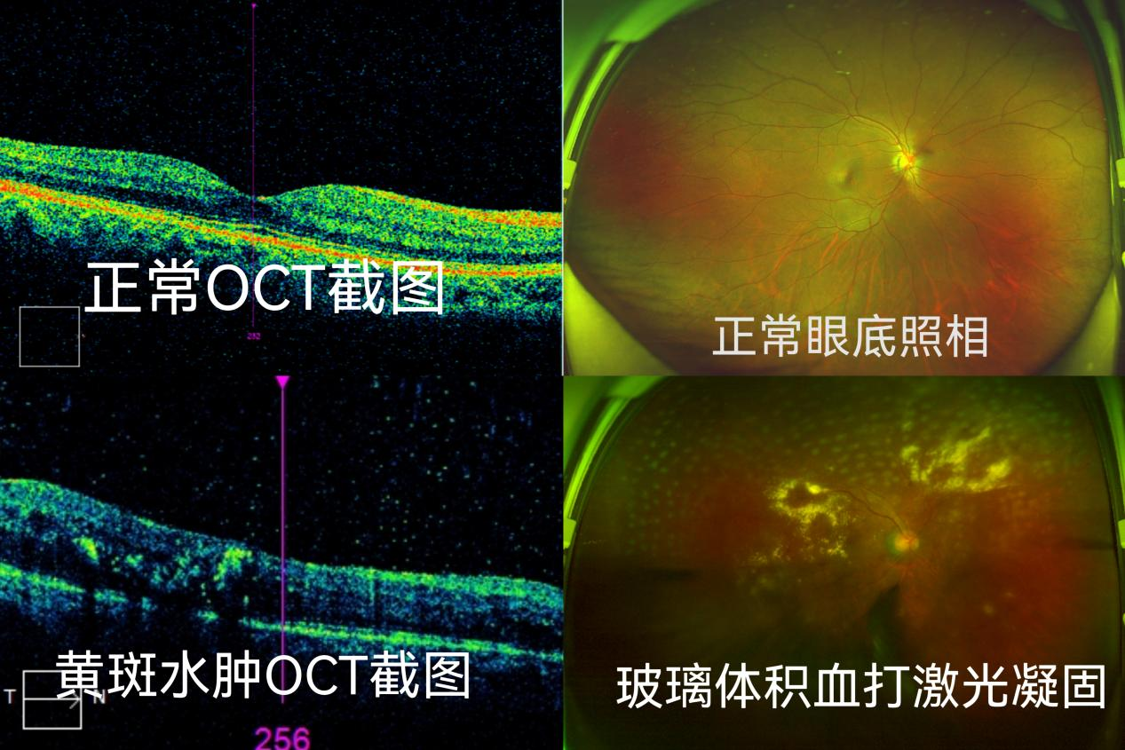 (图一:欧堡超广角眼底检查、光学相干断层扫描仪检查结果如图所示)