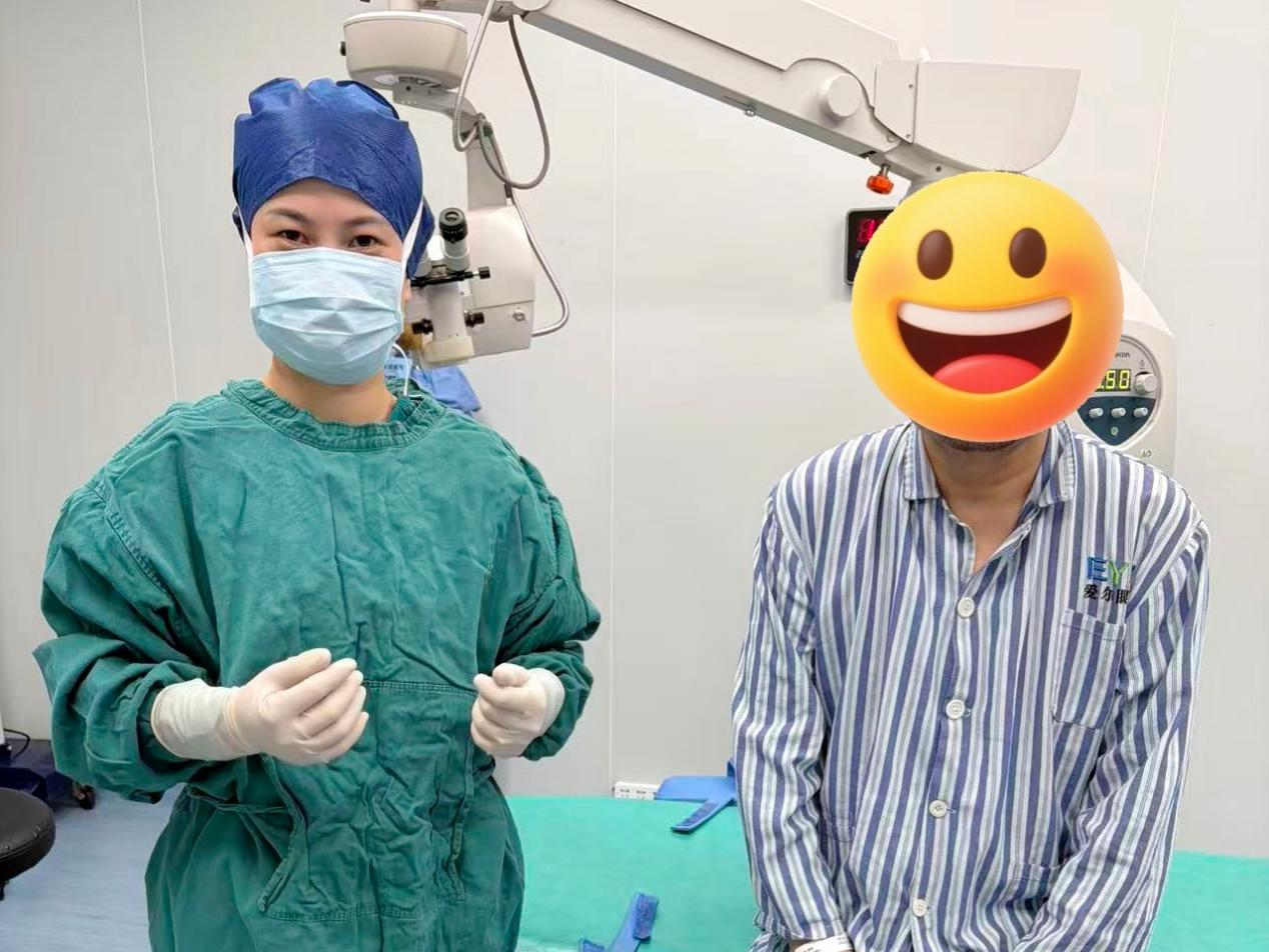 手术中,医生先通过玻璃体切割术,精准清除秦先生左眼内积血的玻璃体,解除视网膜的牵拉束缚;接着切除影响视网膜功能的增生膜,再注入硅油支撑脱离的视网膜复位,最后用激光抑制新生血管生长,阻断病变进展。整个手术耗时近2小时,全程精准微创,术后秦先生安返病房,通过滴眼液进行抗感染、抗炎护理。经过一周的术后恢复,秦先生左眼视力明显好转,从只能看清眼前指数,逐渐能看清近处的物体。