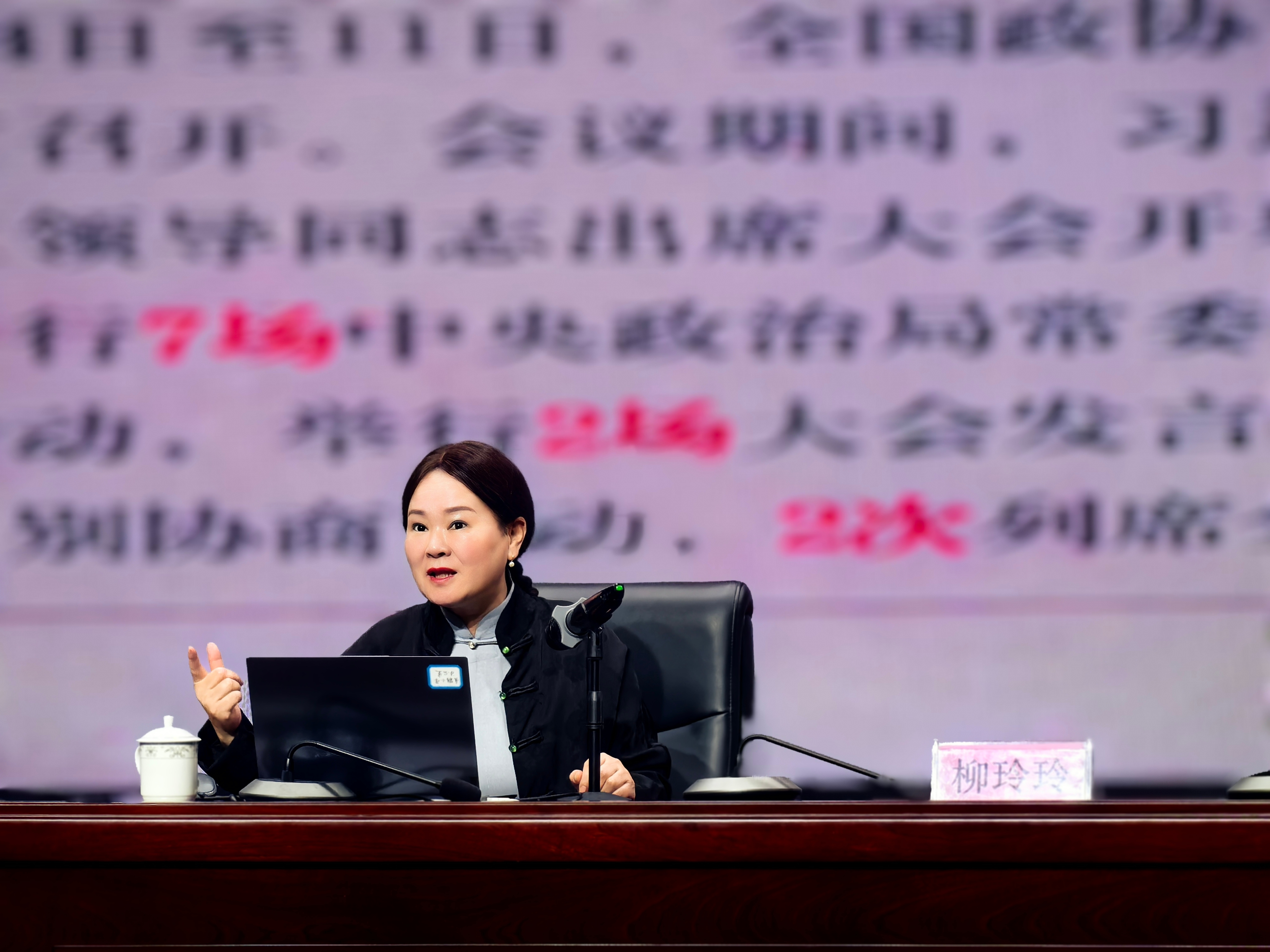 宣讲现场,柳玲玲委员结合亲身参会感悟、一线履职实践与区域教育发展实际,全面解读全国两会精神核心要义,系统阐释国家关于教育发展、民生保障、基层治理等方面的重要决策部署,精准解读新时代教育高质量发展的目标要求与重点任务。整场宣讲主题鲜明、内容详实,既立足政策高度,又贴合教育实际,兼具理论性、针对性与指导性,为全体参会人员带来了一堂深刻的思政教育课,赢得现场阵阵共鸣。