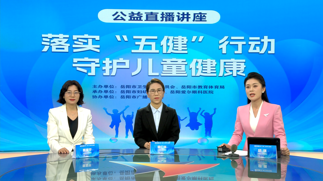 岳阳广电全媒体(通讯员/曾庆琳)4月10日,由岳阳市卫生健康委员会、岳阳市教育体育局联合主办,岳阳市妇幼保健院、岳阳爱尔眼科医院共同承办,岳阳市广播电视台协办的“落实 守护儿童健康”公益直播讲座顺利播出。本次活动旨在提升家长和学校对儿童全面健康管理的认识,推动“五健”行动落地见效,营造全社会共同关注儿童健康成长的良好氛围。