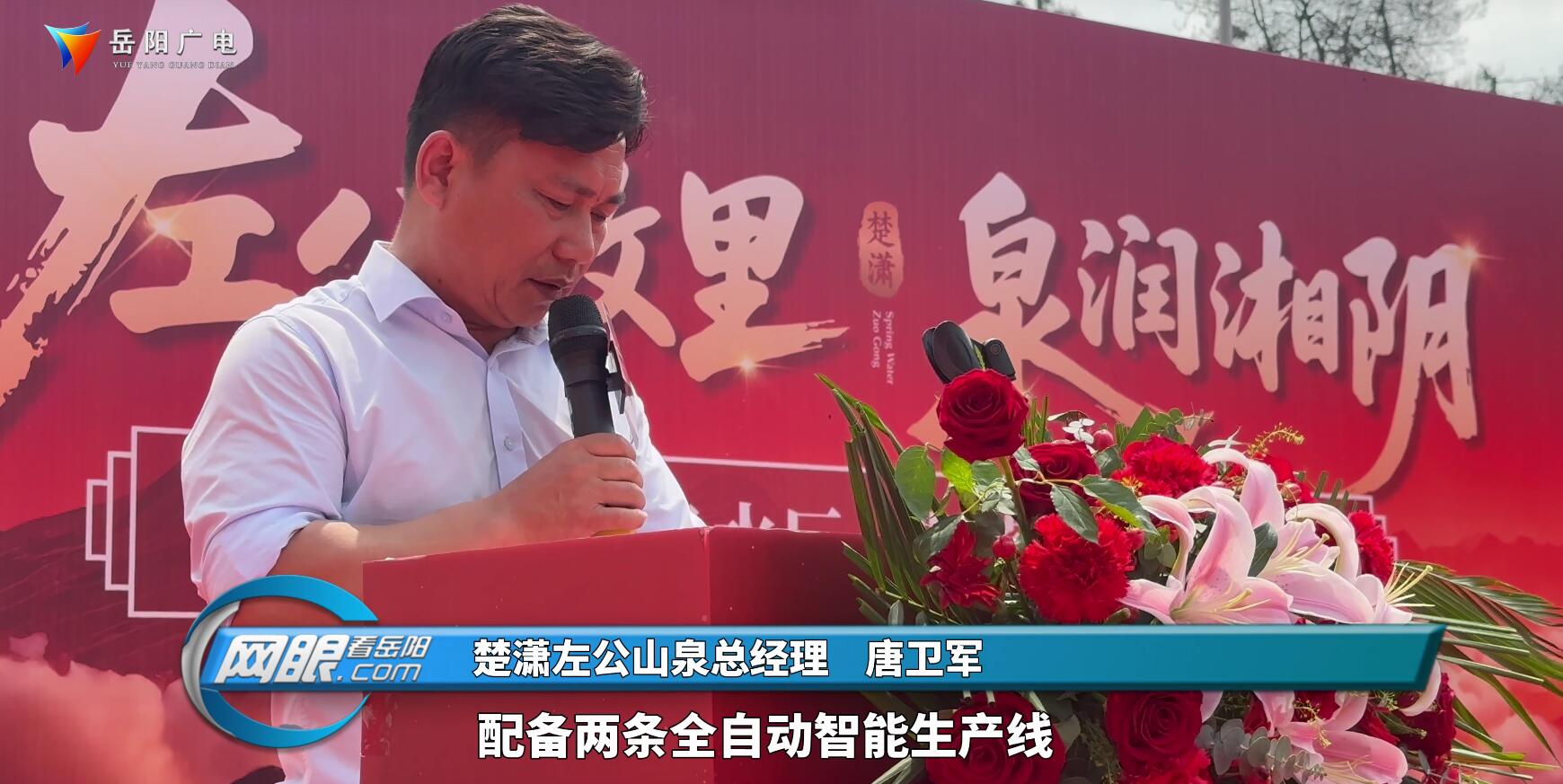 楚潇左公山泉总经理 唐卫军:此次投产的生产基地,配备两条全自动智能生产线,实现了从水源采集过滤,到灌装包装的全流程无人化操作。全程无人工接触,既确保了产品的品质,也彰显了现代化生产的实力。