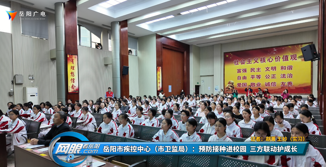 岳阳广电全媒体讯(记者 胡菁 实习 王妙) 4月24日,一场以“预防接种,苗助健康,全民行动”为主题的宣传活动走进岳阳市第九中学。本次活动由岳阳市卫健委,岳阳市教体局主办,岳阳市疾控中心,岳阳楼区疾控中心,岳阳市第九中学联合承办,旨在将免疫规划知识送到学生身边,重点讲解HPV疫苗的接种必要性、适宜时机与具体流程,帮助学生和家长科学认识疫苗,消除接种顾虑。