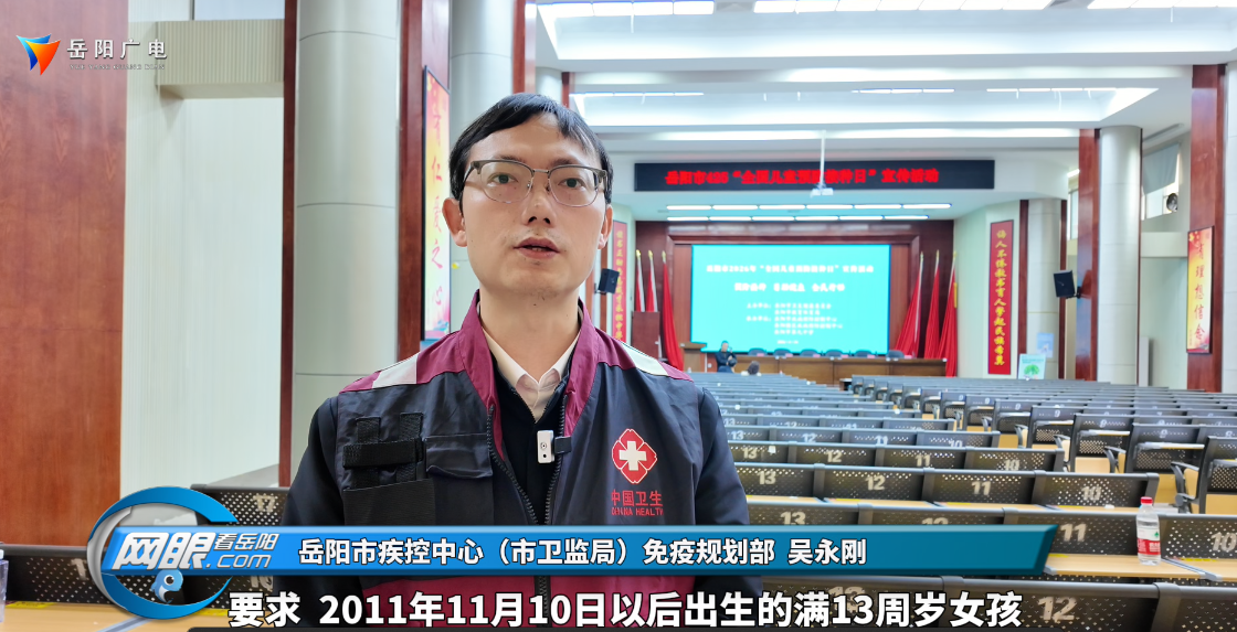 岳阳市疾控中心(市卫监局)免疫规划部吴永刚:“当前,HPV疫苗已纳入国家免疫规划。要求2011年11月10日以后出生的满13周岁女孩主动接种免费双价HPV疫苗,也可以自费接种四价或九价疫苗。我们也希望家长朋友们可通过关注‘岳阳疾控’公众号查询疫苗接种情况。”