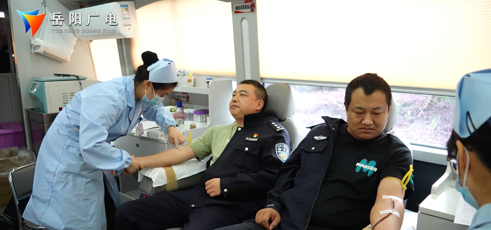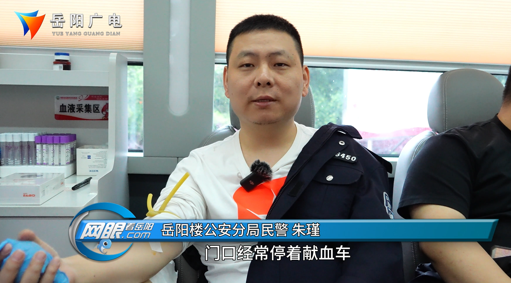岳阳楼公安分局民警 朱瑾:门口经常停着献血车,我这几年每年都坚持献血贡献自己一份力量,对社会做份贡献。