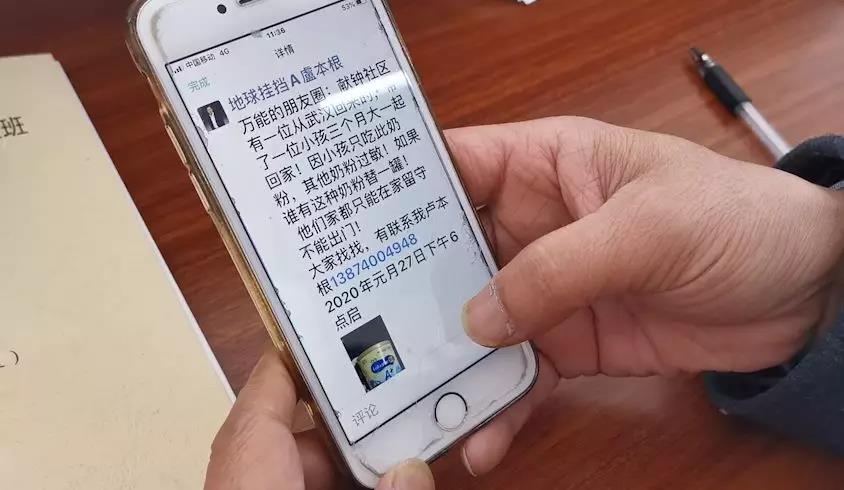 发求助信息的廖女士一家原本在武汉做生意,疫情来袭,他们一家在返乡后,第一时间采取了居家隔离观察。得知消息后,周跃辉找遍了镇上的母婴店,社区工作人员和镇上干部也在通过微信朋友圈向外求助。近期商店大多关门,特殊体质奶粉更是奇缺,周跃辉他们始终没有找到买到奶粉的地方。1月28日清晨,终于传来了好消息!加义镇有一名干部家属在县城一家母婴店找到了3罐这种特殊体质奶粉,镇上干部立刻马不停蹄给他们送上门。