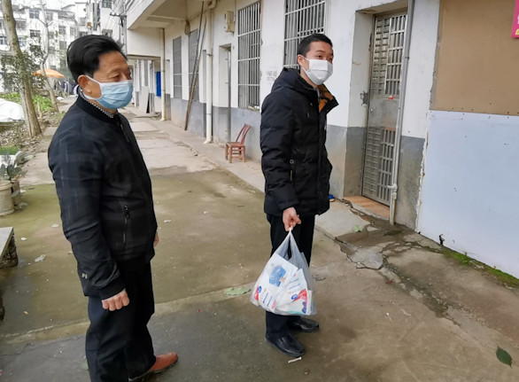 大家送完奶粉刚准备离开,加义镇湖北返乡人员微信群又收到了一条新的求助信息:“能安排医生去我妈那里看看吗?她咳嗽,行走不便,我不能出门,去过湖北。”收到信息后,该镇干部又和乡村医生马不停蹄地赶往吴奶奶家,帮她测量体温,检查身体情况……
