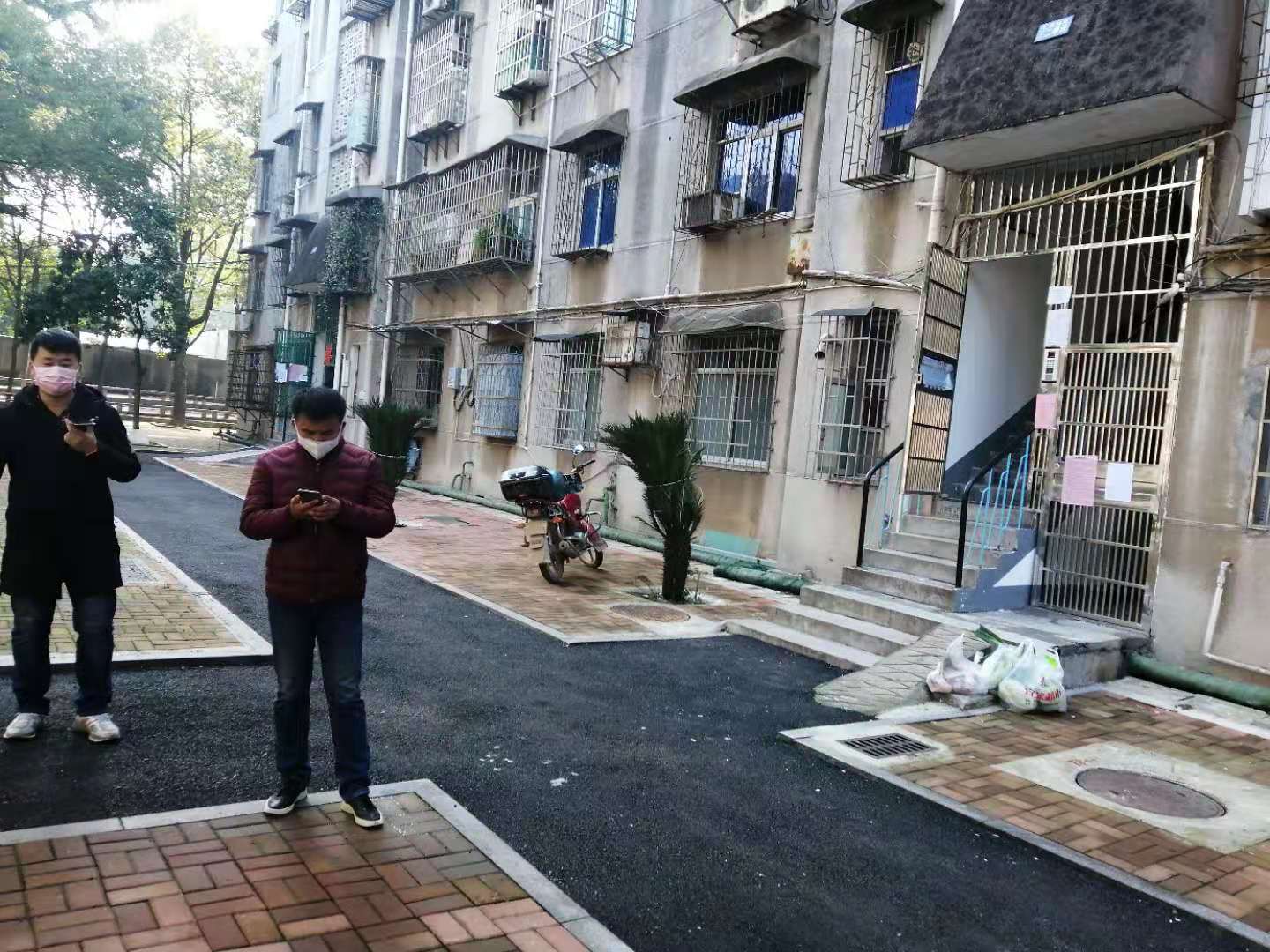 网格员将蔬菜送至居民家门口,并与她电话联系