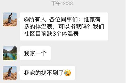云梦社区副主任侯向阳带领各站点工作人员通过安全方式及时将20余支体温计送到急需的居民家中。家住恒大名都的谢先生拿到体温计甚是感激,他说:“这不是一支简单的体温计,而是社区对我们的关爱。”