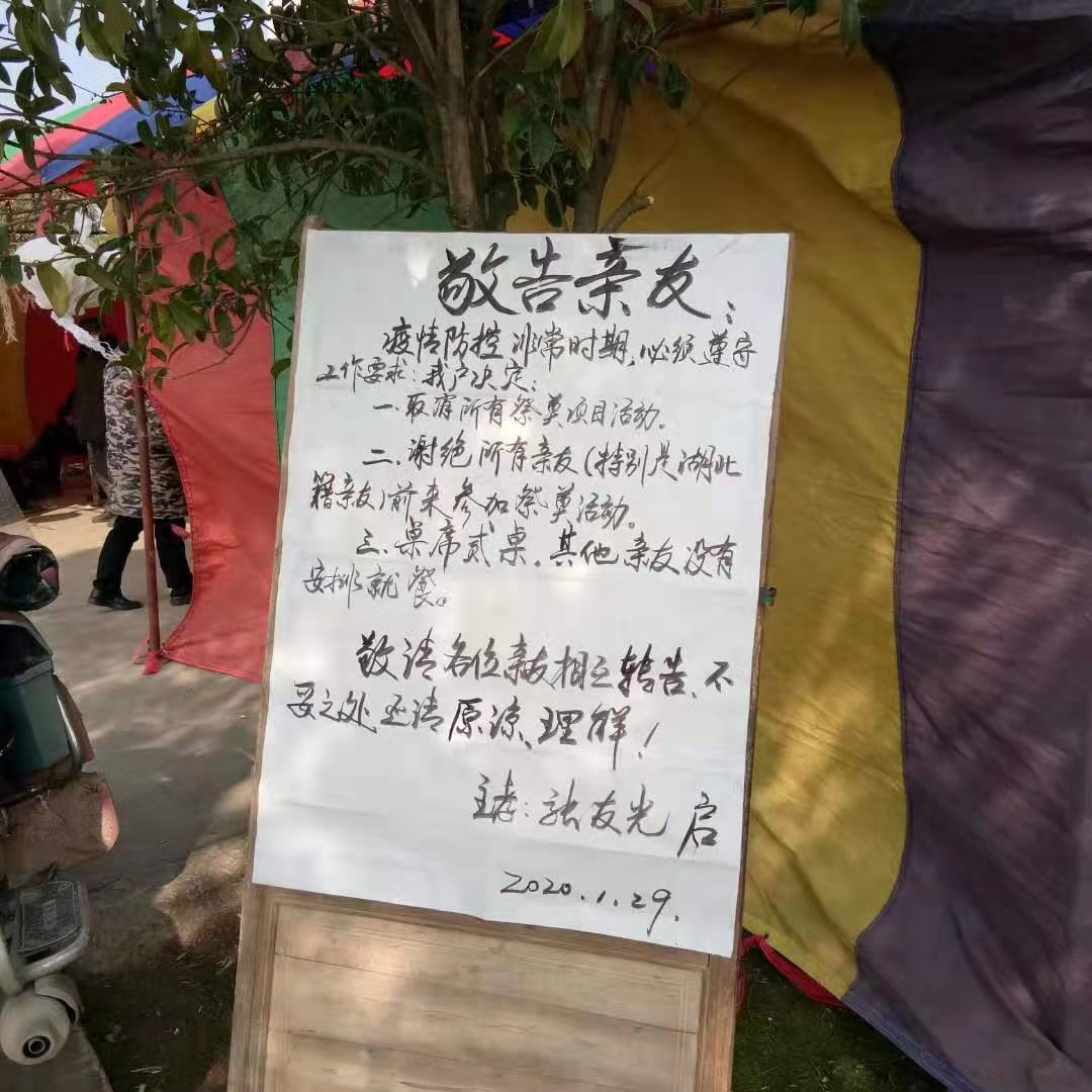 1月28日,华容县新时代文明实践中心、县文明办向全县人民发出5条联合倡议,首条便是倡导“移风易俗”:不聚会、不聚餐、不串门,不参与娱乐活动;不摆酒,不设宴,丧事从简,其他酒宴一律不办。同时号召,全县县、乡、村三级新时代文明实践志愿者团结起来,劝导市民尤其是农村群众取消聚会、宴请活动,共同阻击疫情蔓延隐患。