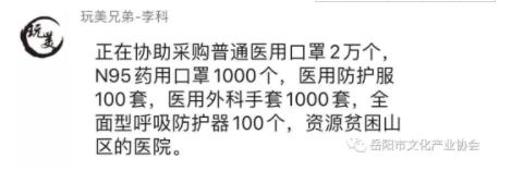 橙子文化、玩美兄弟:积极协助采购普通医用口罩、医用防护服、医用外科手套、全面型呼吸防护器等防护口罩,支援贫困山区医院和困难户。
