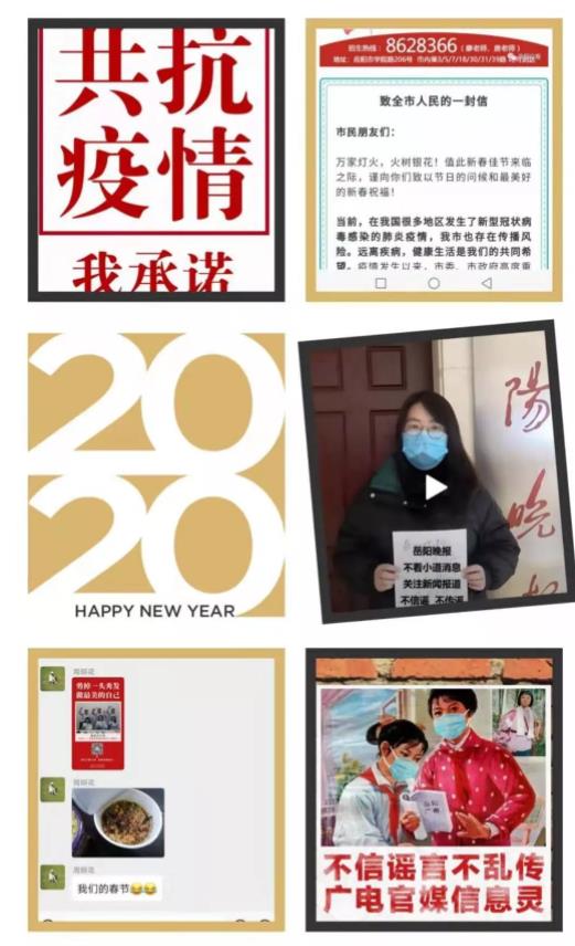 岳阳市广播电视台、湖南大湖传媒集团:疫情来势凶猛,岳阳市广播电视台全媒体记者编辑一直坚守岗位,深入一线录视频、写报道,及时传达岳阳市抗击疫情最新消息;采取各种形式发动群众,传播防控措施。湖南大湖传媒集团被确定为特别报道组,目前策划制作了10多精品力作。他们制作的H5《共抗疫情,我在岳阳,我是 位承诺人!》,市长带头转发,受到多位市领导表扬,目前承诺人多达37万人次。“过年没休息一天,一直在上班”岳阳市广播电视台办公室主任刘隽说。“方便面成了我们春节的美食”大湖传媒集团总经理周明花笑侃。
