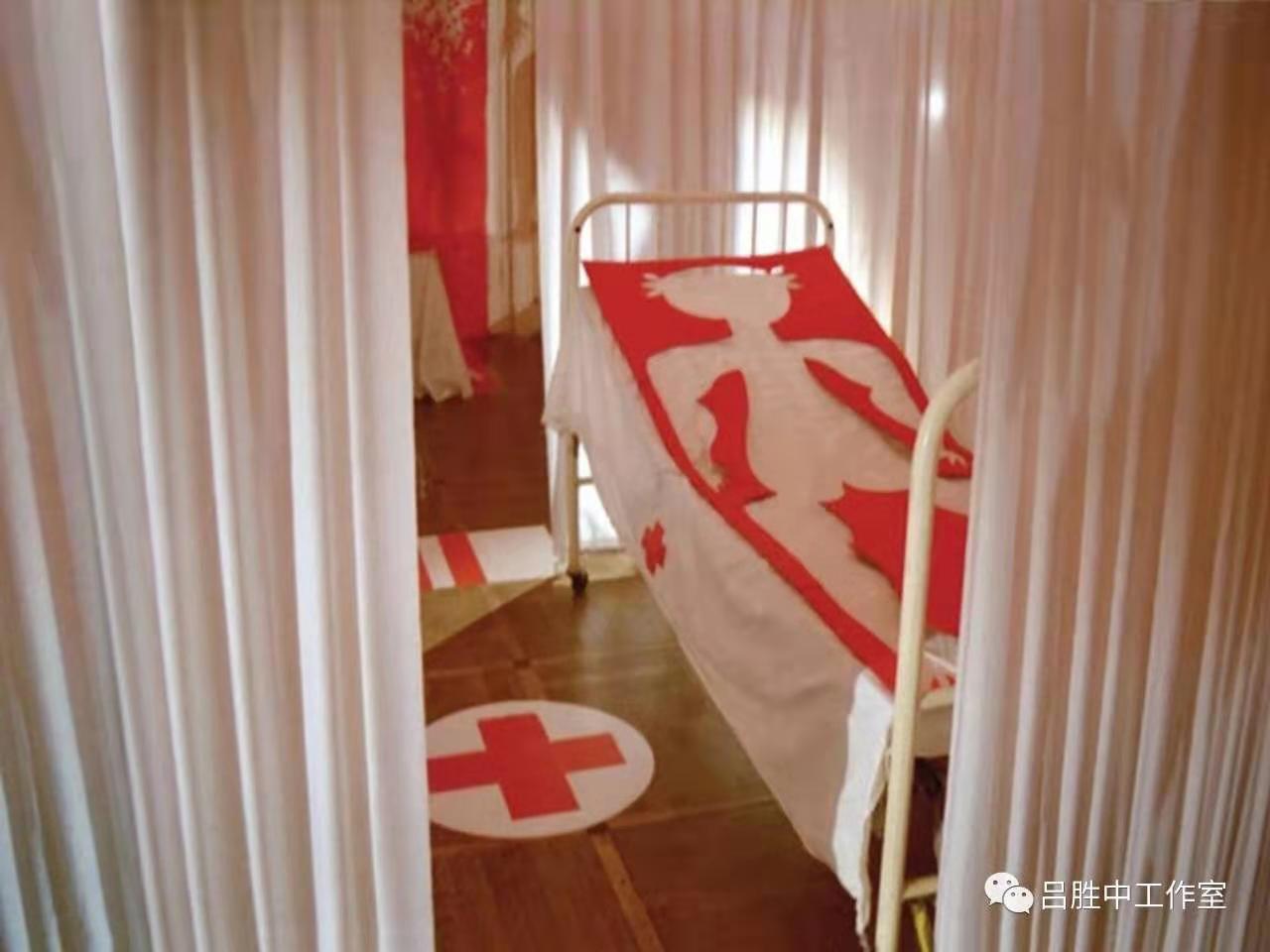 曾经看见一个《急救中心》的作品,在展厅装置了一个有病床的“医院”和一个“中心急救室”,急救室有两张带轮子的“担架车”,病床和“担架车”上都有受到不同伤害的“小火人”,我想告诉人们要好生保护自己的身体,一不小心病毒侵害了,即使它能够归位,治愈的患者,还有被再次感染的机会。