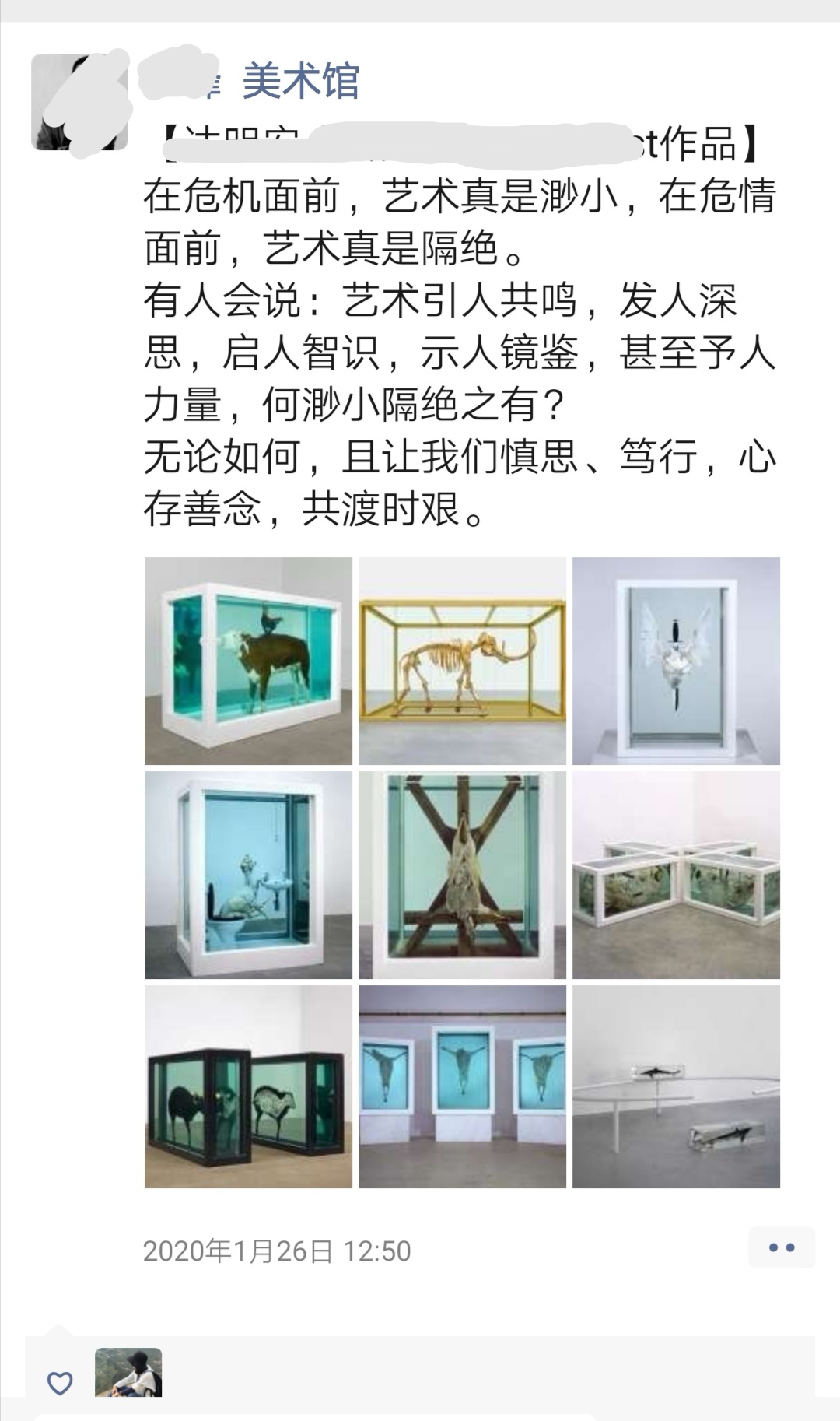 现场一位年长的艺术家问我:你要给什么样的人治病?我说:我不是医生,加强自我防护,我们共同的责任。