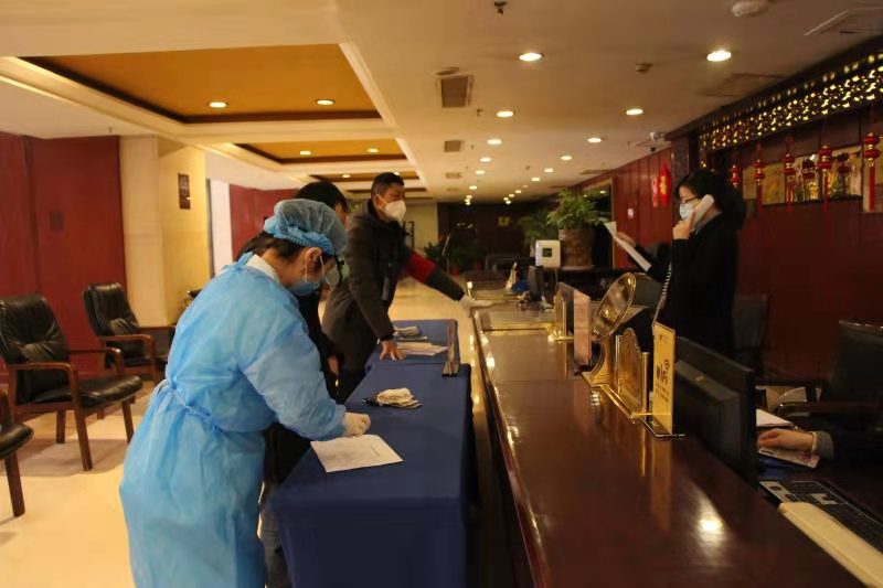 2月4日上午,前厅部经理李华兰,正在用纸笔与客人交流。李华兰每天工作在16个小时以上。由于上班时间长,与客人多说话多,声音嘶哑得说不出话来了。很多时候只能用纸笔与客人交流。非常时期,前厅部几个年轻员工,特别是结婚不久的员工,因为家人担心在接待疫源地客人有感染的危险,不让他们上班。作为前厅部经理,李华兰对员工、对员工的家人也十分理解。怎么办?只能自己顶下来。办理客人入住手续是她。办理客人离店手续是她。前厅接待客人咨询是她。这一顶,就顶了11天。这一顶,让她消瘦了差不多5斤,她还不忘自嘲,这是最好的瘦身。