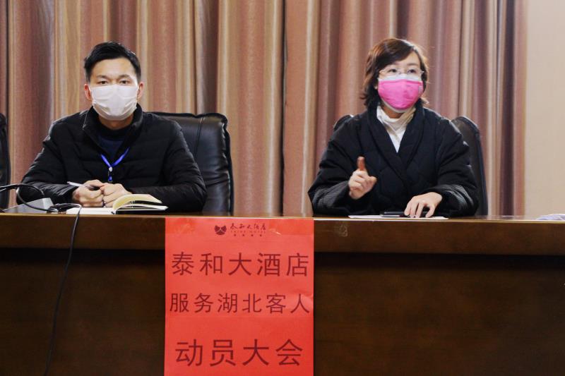 王奇勋是泰和大酒店总经理,大年三十,他和家人吃了一顿团年饭后就再也没有离开过酒店。当泰和大酒店被市抗疫指挥部定为接待疫源地客人定点酒店后,他第一时间想到的是如何为客人为员工提供防护保障。口罩、防护服、酒精、84消毒液等物资紧缺,他发朋友圈,发微信群,四处寻求支援。5000只口罩来了,一件件酒精来了,一套套防护服来了。但是王奇勋不敢松一口气,“湘鄂一家亲”微信群里的湖北客人正在闹情绪。“王总,中央空调停不得,我们冷啊,”“王总,房间卫生清扫、要消毒啊”客人一个又一个要求。