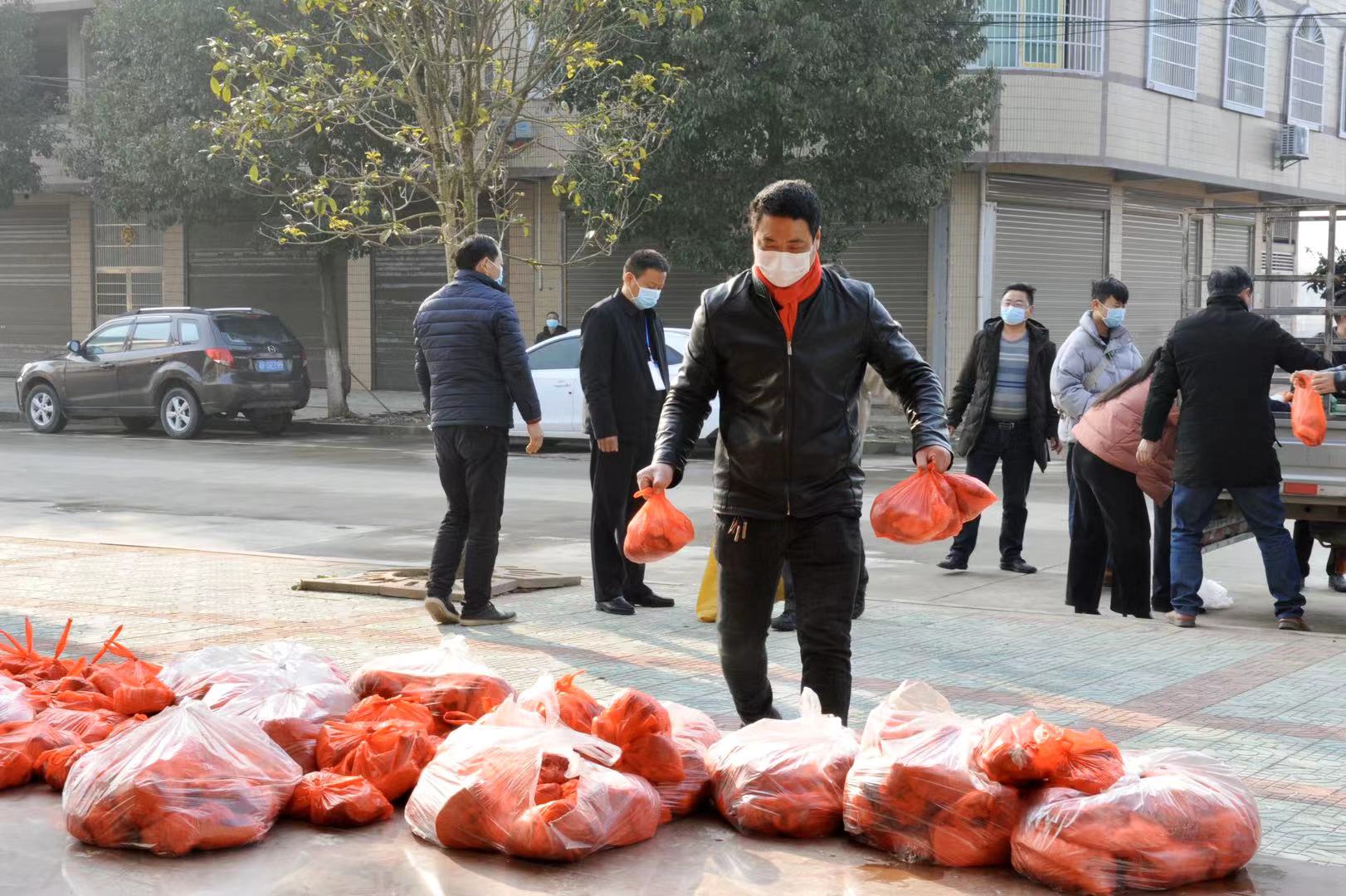 岳阳广电全媒体讯(特约记者 吴巍伟)2月4日早上9时,在华容县东山镇三郎堰社区、塔市驿社区、砖桥社区,三台满载着蔬菜、猪肉和大米的运输车停靠在路边,来自该镇的乡镇机关干部、村干部、村医正在分别打包装袋。当天,该镇657户居家隔离的湖北返乡人员,均会收到1篮蔬菜、3斤猪肉和5斤大米的免费物资供应。