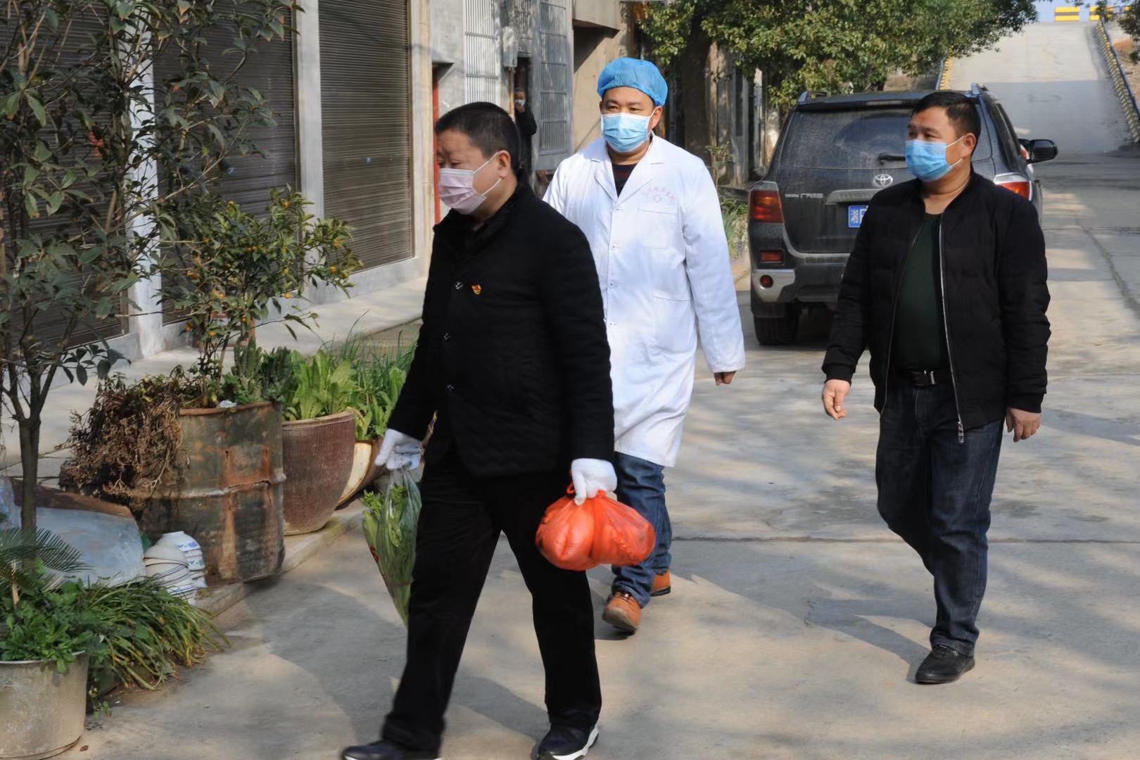 “近段时间感觉怎么样?还好是吧?如果生活中你们还需要买什么东西,到微信群里面和我们讲,我们会及时给你们买了送过来。”上午10点,记者随派送队伍走进东山镇佛寺村,该镇组织委员李国祥、村主任刘文宇带领着村医一行来到2组居家隔离人员张某某家中,将蔬菜、猪肉、大米亲手送达,并详细询问他和家人身体状况和生活情况。张某某告诉记者,他从武汉回来一二十天,没有出现感染症状,和家人一直在家隔离,镇村干部非常关心他们,每天都会带村医上门量2次体温,还给他们送菜送米送油,代买各种生活必需品。