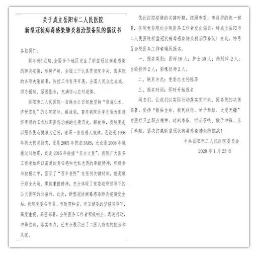 兵分两路,同时发力。为全力支援救治定点君山医院的工作,医院党委发出“关于成立岳阳市二人民医院新型冠状病毒感染肺炎救治预备队的倡议”,全院医护人员主动请缨,踊跃报名,短短5个小时,报名人数达210人。通过筛选,37名医护人员成为“首发阵容”,并接受了系统的感控强化培训。只待一声号角,便可整装出发!