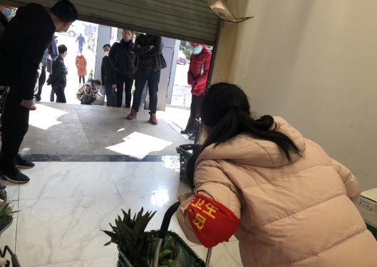 与此同时,岳阳楼区服务城陵矶新港工作组冷水铺社区的上海如海超市旁,搭起了党员示范岗的红色小帐篷。党员们每天定时定岗,在数个人流相对较多的路口做好车辆和居民进出登记,提供体温测量服务。“疫情期间,大家尽量少出门、少上街、不串门、不聚集,除平时派一名家庭成员出来购物之外,尽量不要出门。”党员们拿着小喇叭劝导来往居民,他们平时还会备好一些备用口罩,发放给前来购物却未戴口罩的居民。