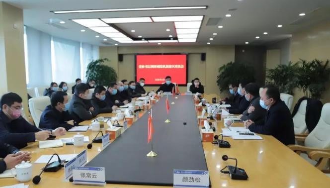 新港区领导彭公穆、伍刚、贺正哲、胡卫,以及新港区、综保区相关负责人参加会议。