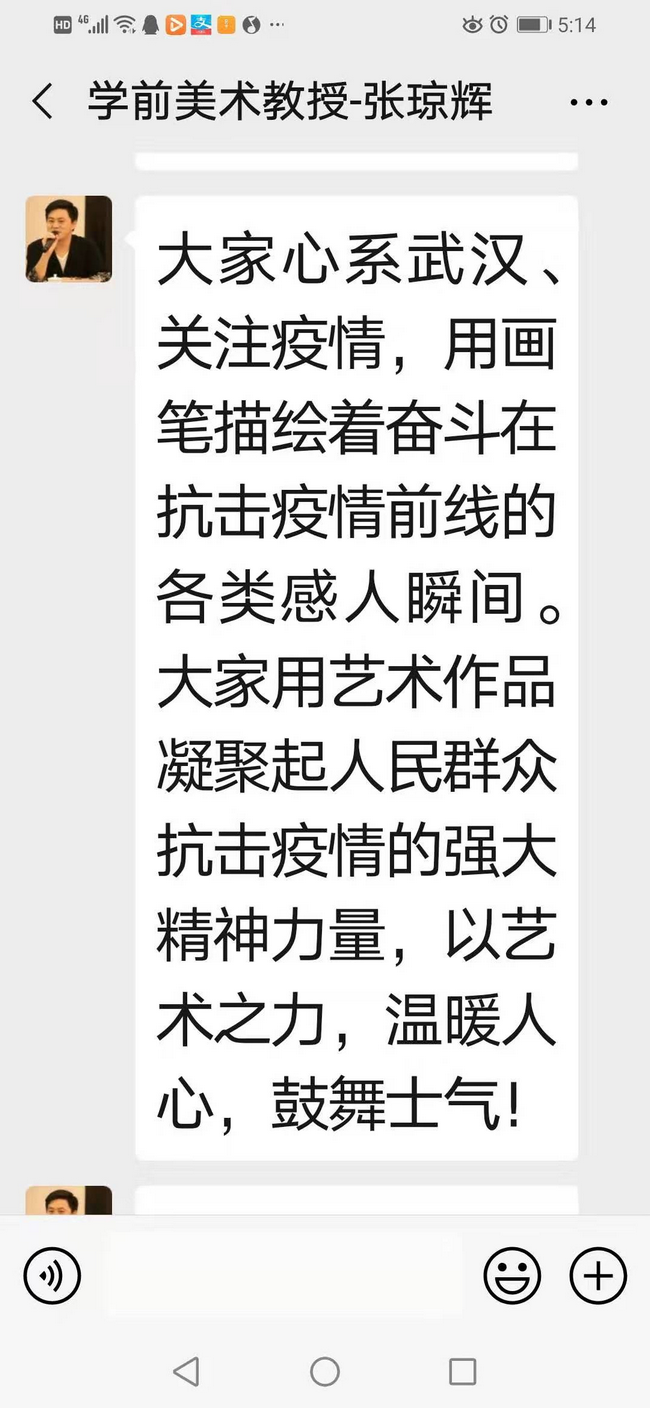 在抗击疫情期间,他还在动员和组织岳阳市美术界的同行进行创作。截止目前,岳阳已经有40多位画家创作了40多件主题作品并在多个微信平台或媒体发表,作品极大地鼓舞了医护人员和抗疫一线的干部群众。