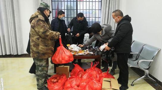为各村(居)值守人员发放汤圆、水果、口罩