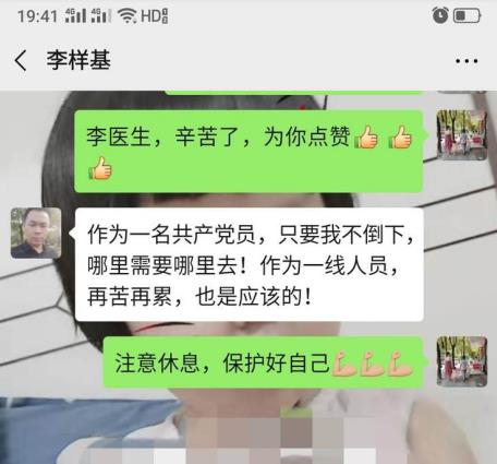 钟南山院士说:“易感人群为40—60岁的中老年人”。已经40岁的李医生总是这样任劳任怨,默默无闻的奋战的抗疫第一线。我们心内科所有医护人员都在为他担心,但他却笑着说:“只要我不倒下,哪里需要就到哪里去”!