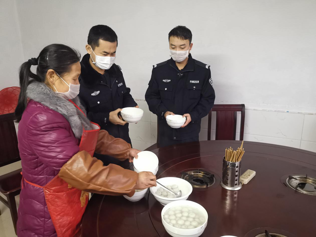“吃汤圆了。”看着热气腾腾的汤圆,民警小田表示,这是自己吃过的最美味的汤圆。
