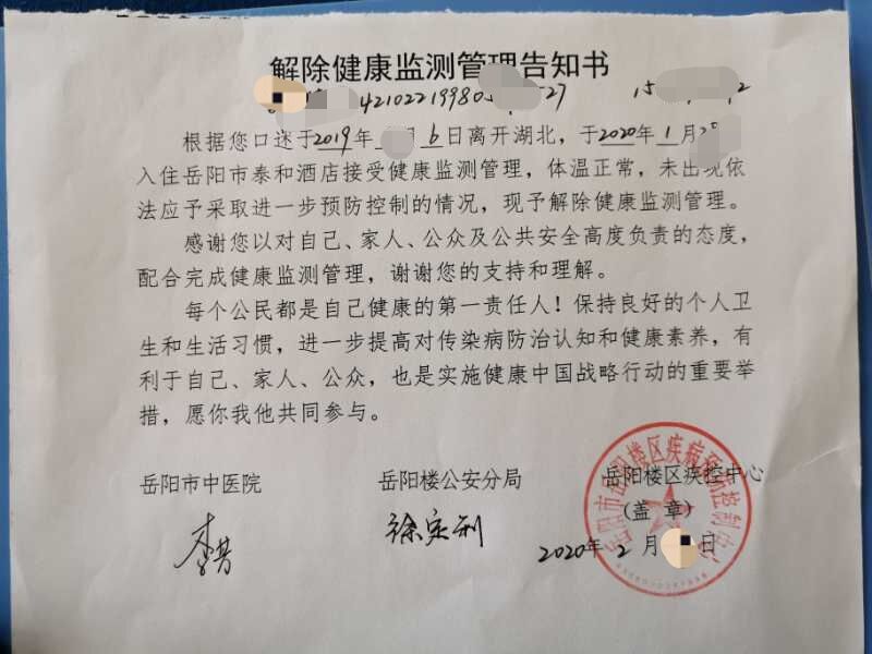 记者从泰和大酒店获悉,截至2月9日上午12:00,已有83名湖北籍客人隔离期满,解除了健康监测。