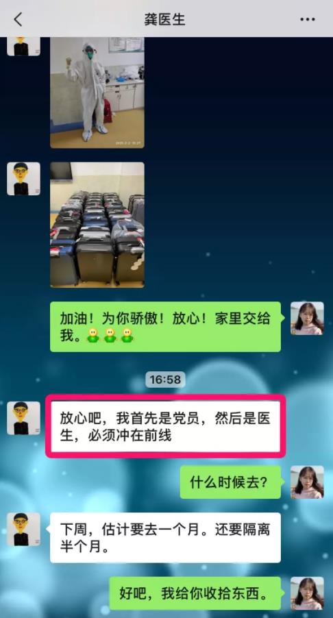 刚跟老婆通视频,她告诉我也报名参加了第三、四批的赴君山救治队。说实话,内心是不太同意的,毕竟家里还有老人孩子。她说;“你是党员你先上了,我也得跟着来啊,这叫夫妻同心、奋战一线”。她说得也对,我报名的时候她没说二话,现在我不能左右她的决定,毕竟我们都是一身白衣,都肩负着救死扶伤的使命!