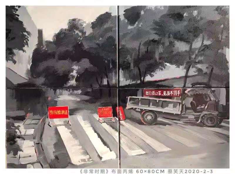 蔡笑天 丙烯画 《非常时期》