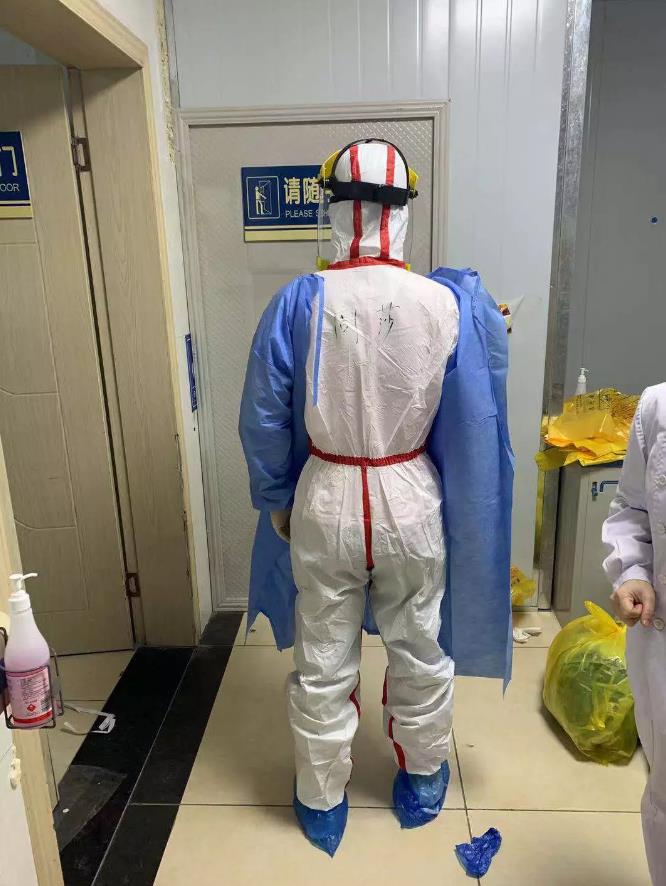 此时,医院的支援人员到了,刚从隔离病房出来的周莎不辞辛苦向同事们详尽传授自己在隔离病房的经验,并贴心地为他们贴上皮肤保护膜。看着他熬红的眼圈,同事们都说;“有我们呢,去睡一下吧,周老师!”可周莎仍旧不放心,以防万一就在旁边的护士站凑合了一晚。