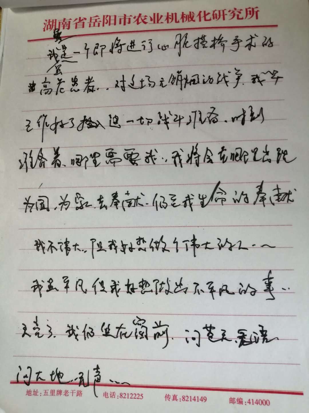 2月3日下午五点,何文峰依旧还是坐在自己房间的窗户前,看着窗外时有时无的车辆和路人。作为岳阳市沛璘劳务工程有限公司的一名负责人,工作之余,他常常利用空余时间,去敬老院、去贫困户家里走访慰问,很多志愿活动现场都能看到他的身影。何文峰说,原本在年前预约了一位武汉的教授,来为他做心脏搭桥手术,因为疫情,手术推迟,他也只能每天在家按时服药。虽然被禁足在家,可他的心却片刻都不得安宁。每天看着窗外经过的社区工作人员,看着新闻里的医护工作者的身影,作为一个志愿者的他,那颗渴望进入战场的心也被点燃了。