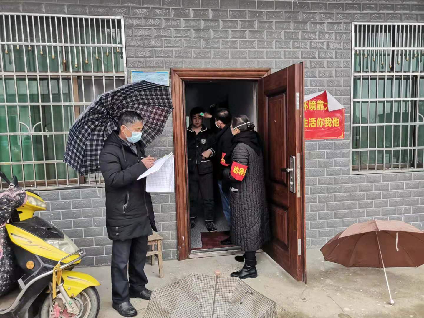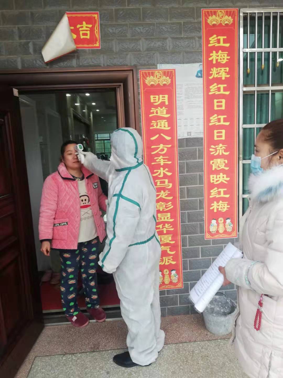 扶贫队员在对未脱贫贫困户进行慰问的同时,与村干部上户量体温,做宣传,发现极个别家庭围在一起打麻将,工作队进行了明令禁止。