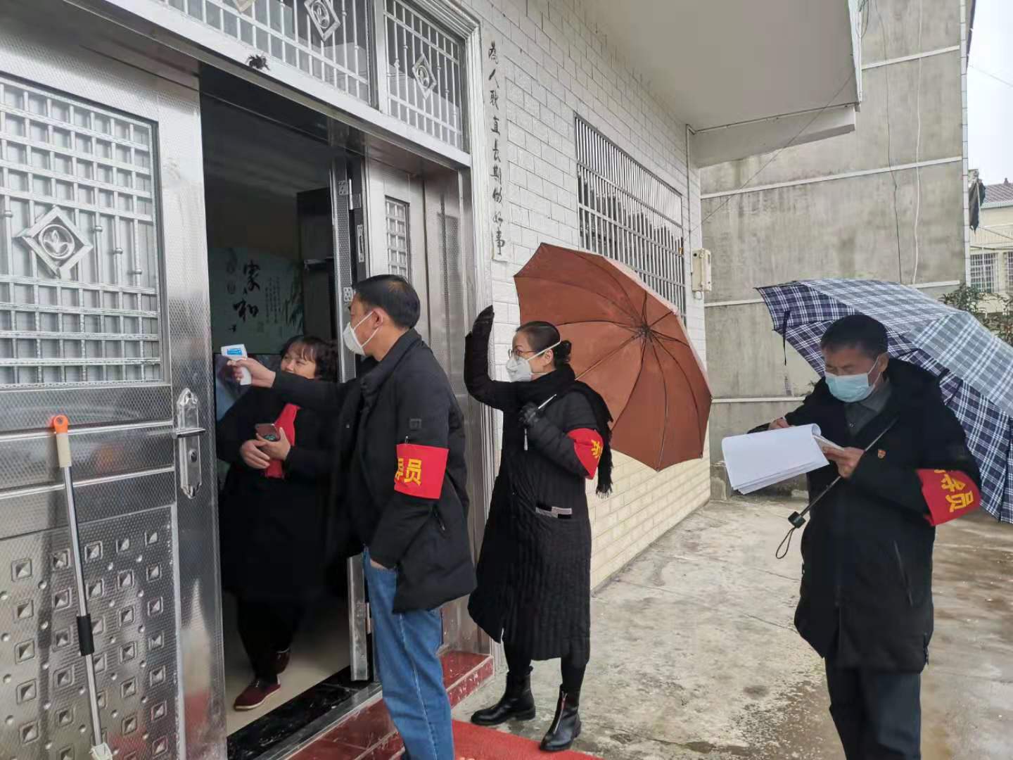 设路卡、留通道。党员示范岗的牌子和党旗在路口格外显目,党员先锋队,每天佩戴着党徽和执勤红袖章,既当守卡员,又当检测员,还当信息员。对入村人员询问、劝返、检测体温,发现问题及时上报,确保“不漏一车、不漏一人”,真正做到了外防输入、内防扩散。每天轮流24小时坚守岗位,筑起了一道“红色防疫墙”。