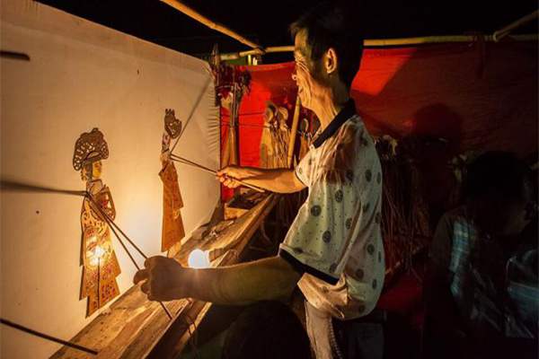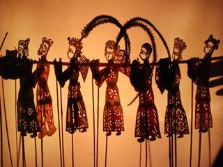 它是以兽皮或纸板制作而成的人物剪影来表演故事的人间戏剧。表演时,人不多,两三人足以,一人边在灯光照亮的影布后面操纵剪影,边讲着励志人心的故事,再加上奏乐配合的两人,就能够完成演出。