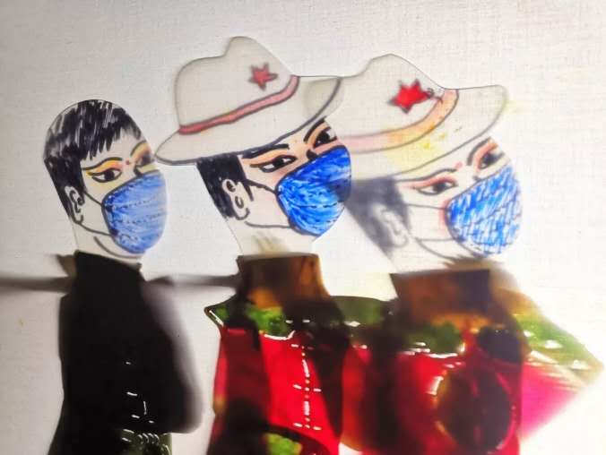 还哇呆在屋里冒点味,医生护士比你苦万十倍,一听到病毒疫情传,立马就跑到武汉去支援,她也是娘爷咯好宝贝,他也是崽女咯天和地,他也是夫娘咯好伴侣,她也是丈夫咯好贤妻”(唱词选段)这些皮影戏中的影子都戴着口罩,以及标志着医护人员的白色帽子。影子们以插科打诨的语气,将疫情防控知识轻松诙谐地唱了出来。宅在家里的市民,不仅能欣赏到原汁原味的皮影戏,还能科普到疫情防控知识。