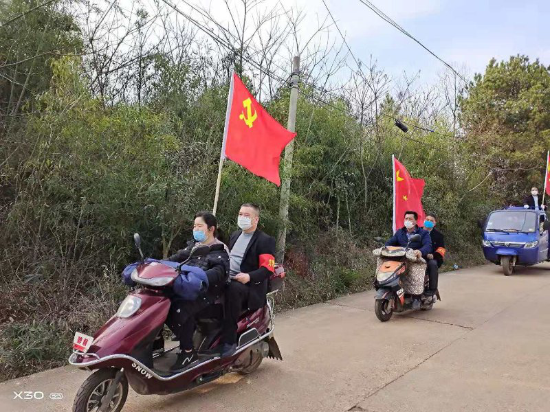 “请各位父老乡亲不外出,不串门、不办酒,尤其是不要扎堆打牌……”每辆摩托车上都挂着一个小喇叭,一遍又一遍播放着防疫注意事项。“张娭毑、李娭毑,快回去咯,不要在一起聊天,不安全咧!”碰到有扎堆在外面聊天的村民,摩托车队会停下来,耐心劝导,疏散人群。连日来,这一辆辆插着红旗、带着小喇叭的摩托车灵活穿梭在洋沙湖镇的村组、屋场,成为了该镇防疫一线一道靓丽的风景线。