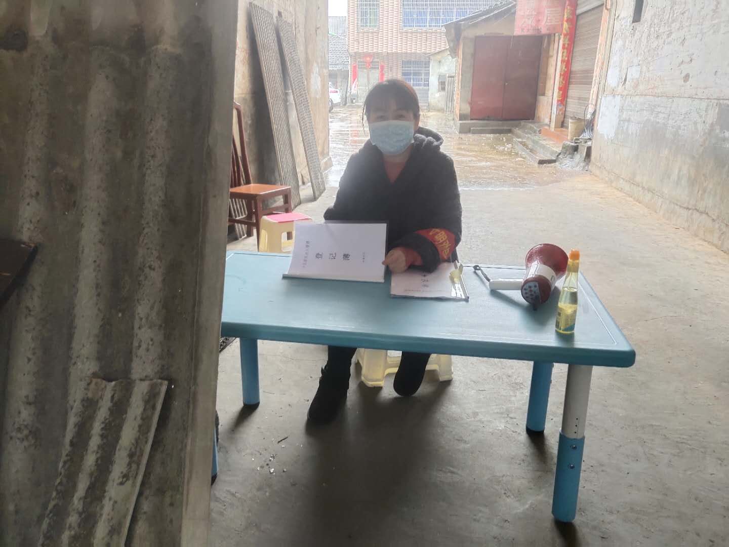 郑小飞在日杂宿舍小区门口守点