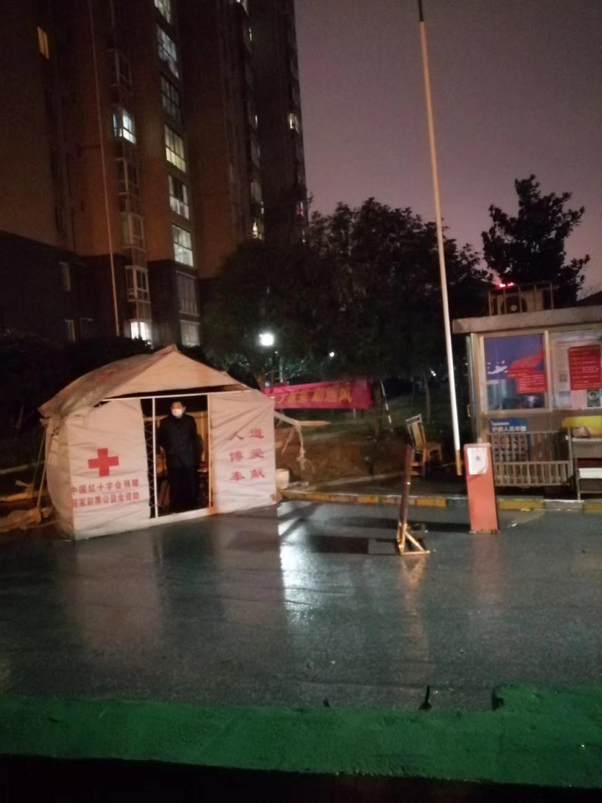 深夜的风雨吹湿了头发发,带来刺骨的寒冷,但是在这个时候每个值守人员都毫无怨言,依旧坚守在“第一道”防线的监测点上,确保排查工作不漏一人、不漏一车。帐篷倒了就再立,风雨再大,他们始终坚守阵地。风雨中一把把五颜六色的伞、一个个红袖标、一张张红色的帐篷像是点燃了信念的灯,为群众筑起了一道“防护墙”。