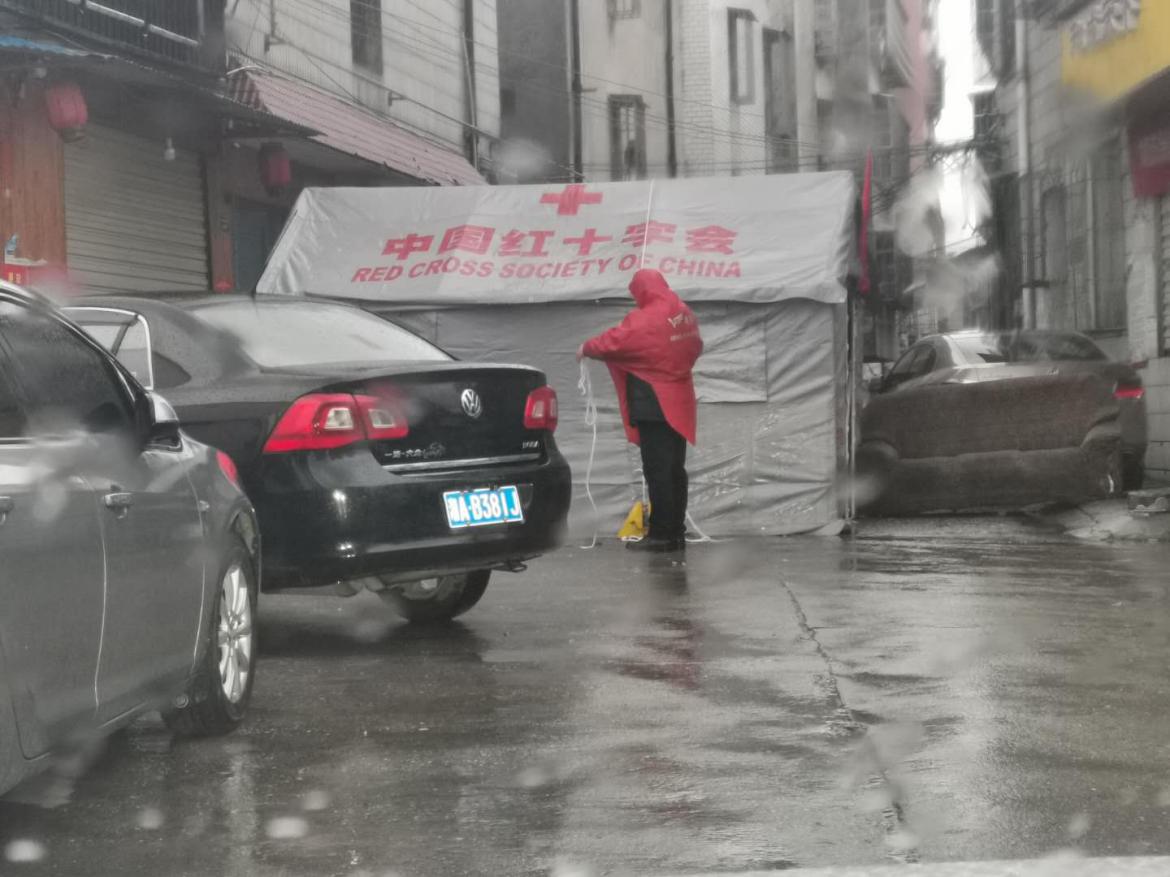 岳阳广电全媒体讯(岳阳楼区融媒体中心 陆佳 张璇)2月15日,狂风暴雨不期而至,给疫情防控工作带来了严峻考验。然而,这样的天气依然阻挡不了岳阳楼区王家河街道奋战在防疫一线的200余名工作人员,他们支起帐篷、撑起雨伞,在暴雨中“燃”起了爱和希望。