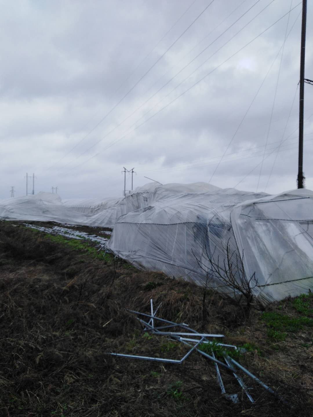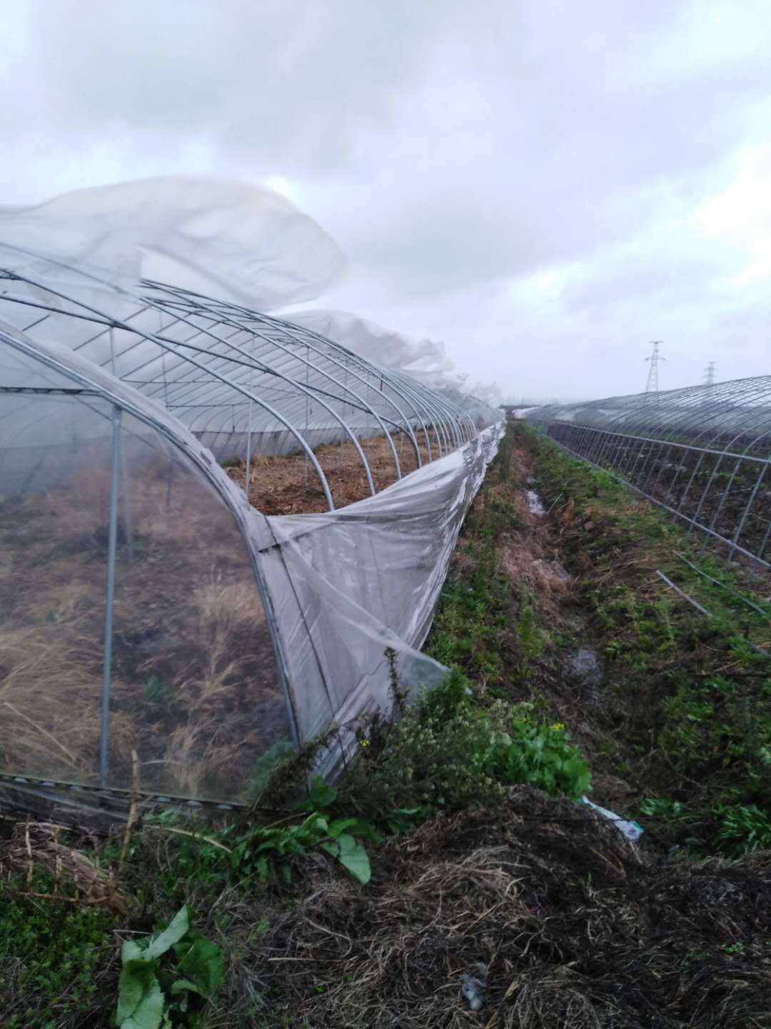 新泰和蔬菜科技园以设施农业为主,有3000多亩蔬菜大棚。接到暴雨狂风预警后,从14日开始,朱建国和园区物业公司总经理助理游朝阳等带领7名管理人员和部分产业工人,及早动手,采取应对措施,将大棚门窗关闭,外遮阳收拢,所有卷膜器全部落地,对大风入口处增加压膜绳,并且将压膜绳锁紧加固,大棚四周排水沟清积扫障,保持畅通。15日下午暴雨倾盆,狂风大作,他们仍然巡回在朔风冷雨之中,对大风吹斜的大棚增加斜撑抵抗风力,能抢则抢,尽力降低灾害损失。通宵达旦与狂风暴雨作殊死搏斗。但是由于阵风达到8级以上,实属人力不可抗拒,仍然造成123个大棚倾斜倒塌,其中全倒塌29个,直接经济损失130多万元。灾害发生后,科技园迅速组织人员摸清农户灾害损失,对完全倒塌的大棚进行清场便于重新搭建,恢复生产需要的薄膜钢管等物资及时在网上定购。另一方面坚持科学防疫不松劲,上门督查,设关堵卡,循环巡逻,严防死守,确保园区万无一失。