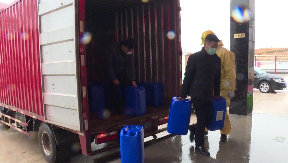 岳阳广电新媒体中心(记者 凌云志)2月15日下午,雨雪交加,一辆卡车在岳阳才益精细化工有限公司门口停下,经过防疫工作人员体温检测、身份登记,并对车辆进行消毒处理后,在产品仓库将1000公斤消毒杀菌剂装上车,随后驶向康王乡黄峁山村,免费捐赠给村里用于公共场所消毒。