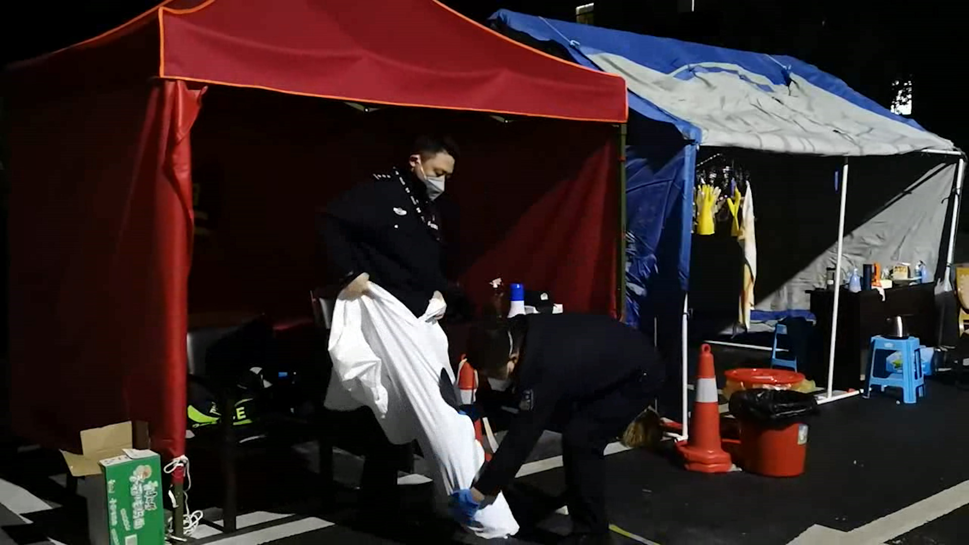 岳阳市公安局岳阳楼分局防疫突击队队员 杨横:朋友会定期给他们买物资放在门口,我很感谢,因为我们帮不上忙,因为我们在这里需要做的太多了,我们不能离开,家里基本就是靠朋友帮忙。
