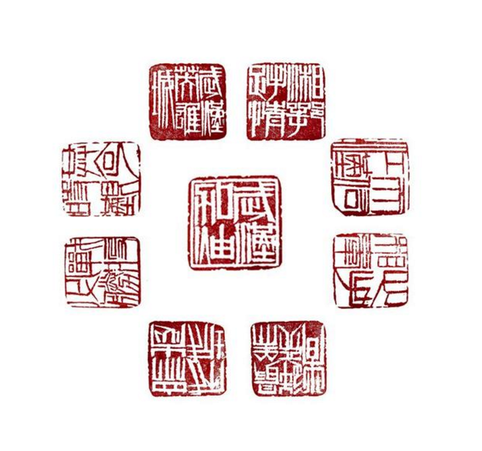 庚子新年,新型冠状病毒疫情突然来袭。八十岁的方老宅在乡村却心牵抗疫。这几天,以刀为笔,夜以继日创作了一组“情牵抗疫”的主题篆刻作品。这组作品一共9枚,以作品《武汉加油》作品为中心,《共克时艰》《众志成城》《湘鄂手足情》《武汉英雄城》《最美逆行者》《心手相牵》《战疫必胜》《天佑江汉》等8枚篆刻作品环绕周围。这组篆刻作品设计精巧,字字苍劲有力,其中既有阴刻也有阳刻,用方寸之间的艺术形式表达出方老对抗疫一线工作人员的崇高敬意,同时寄托着方老对武汉人民的深深祝福!