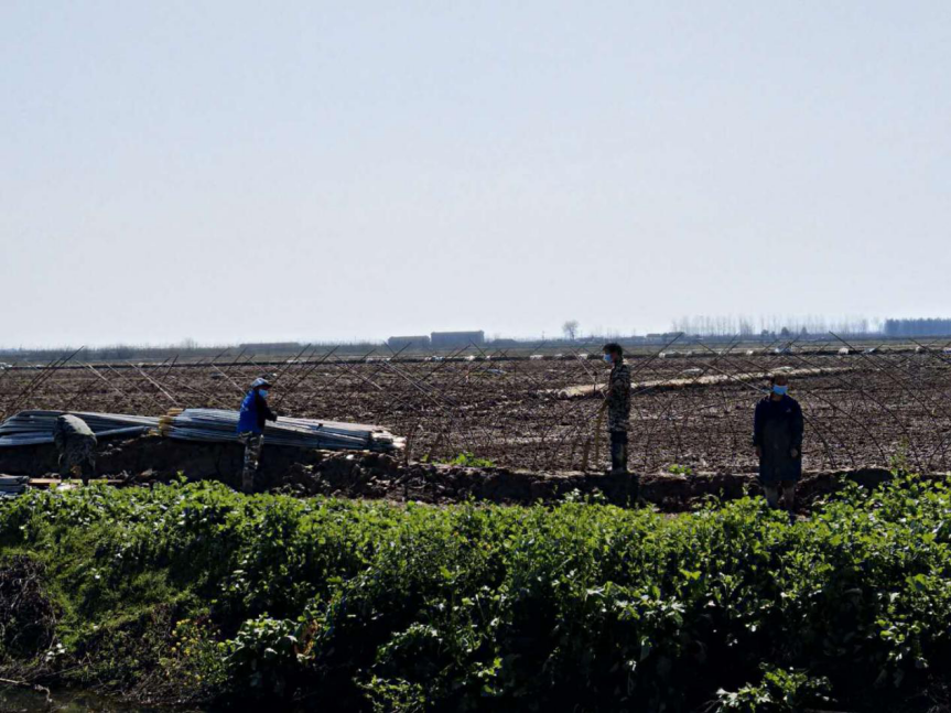 2月18日,在凤凰乡磊石村,几名种植户正在西瓜基地搭建大棚,为即将栽种的西瓜苗做准备
