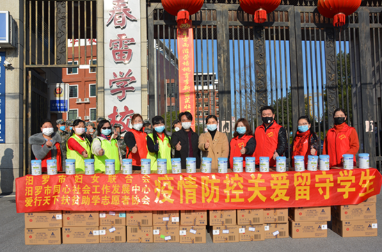 抗疫期间,爱行天下志愿者协会会长、同心社会工作发展中心理事长徐金娥心系春雷学校留守学生,多次打电话给学校校长周龙,询问留守学生吃得好吗?师生佩戴的口罩够用吗?还需要什么防疫物品?