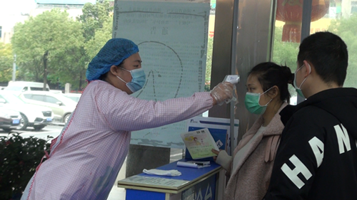 导诊台护士每天对进入医院的就诊患者测量体温,及时掌握就诊患者体温变化情况。